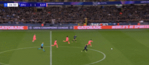 第6分钟,布鲁日快速反击,博尔赫斯带球杀入禁区后送出助攻,特雷索尔迪捅射破门,比分1-0领先。据统计,巴萨近9场各项赛事比赛都有丢球,总计14球,这是2013年3月之后连场丢球的最差纪录。