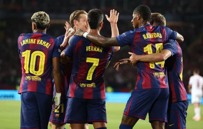 本场比赛,巴萨派出首发的阵容:25-什琴斯尼、3-巴尔德、4-阿劳霍、23-孔德、24-埃里克·加西亚、16-费尔明、17-卡萨多、21-德容、7-费兰、10-亚马尔、14-拉什福德